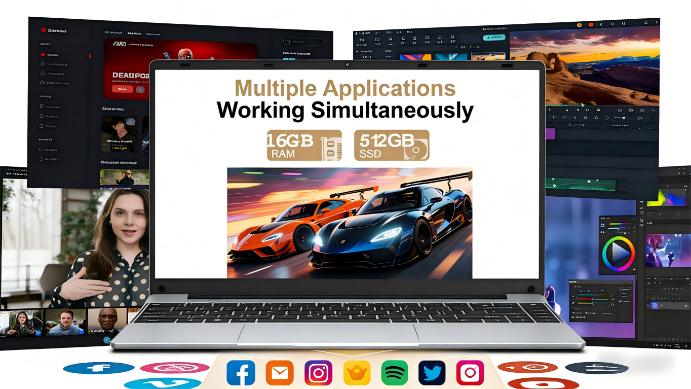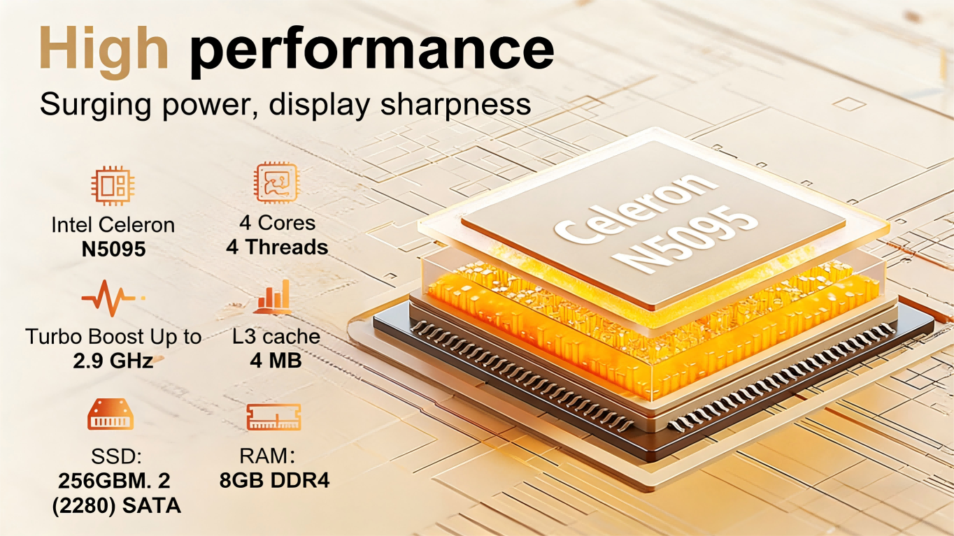 - 📊Seamless Multitasking. Power through work and play with an the latest 11th Gen processor N5095, 16GB RAM, and a speedy 512GB SSD that handles countless browser tabs and applications effortlessly.