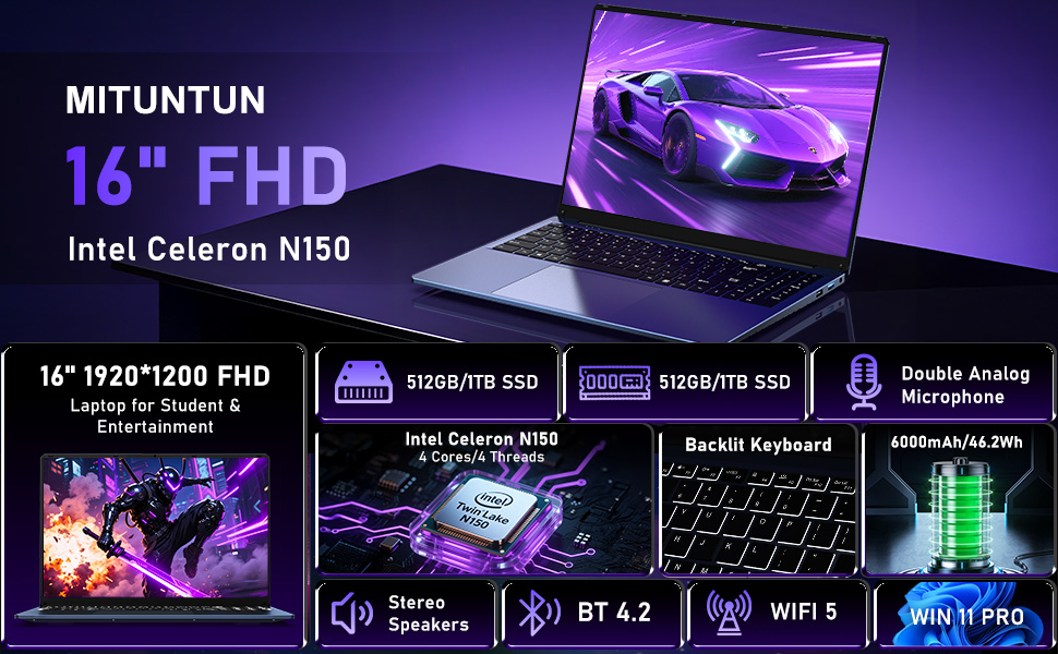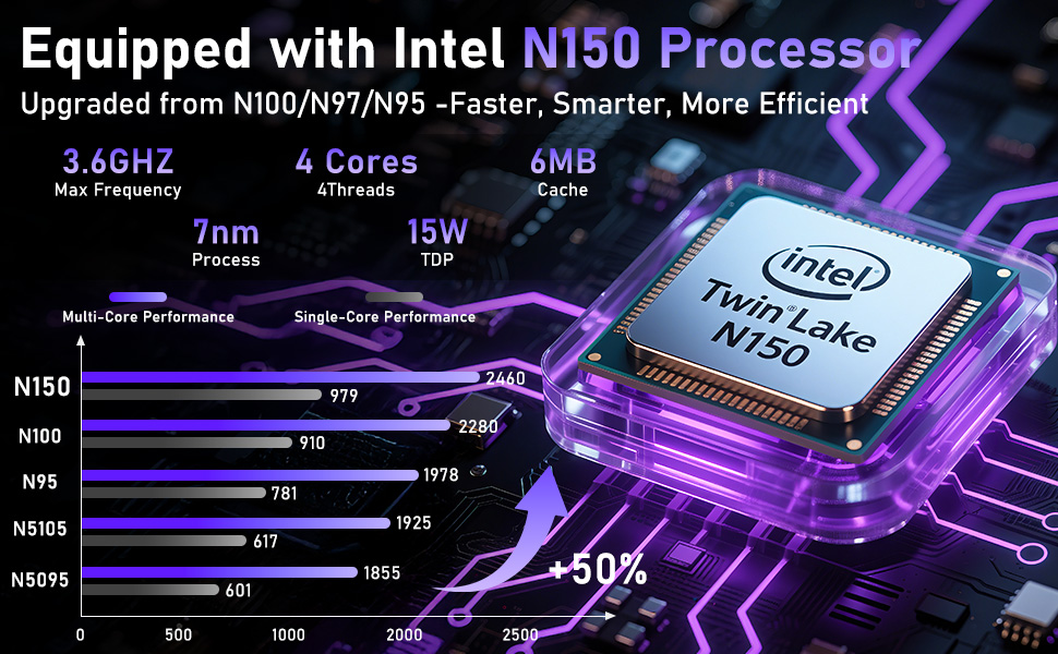 - Smooth Performance for Work & Play: Powered by the latest processor N150 (4C/4T, 3.6GHz) and Integrated Graphics (1GHz), this laptop delivers responsive speed for multitasking, browsing, and everyday tasks without slowing you down.