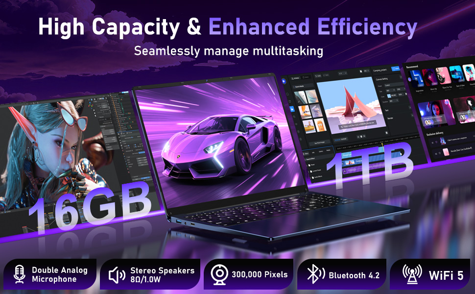 - Ample Memory & Storage: With 16GB RAM and 1TB SSD, effortlessly handle work files, multiple applications, and entertainment - all without slowing down.