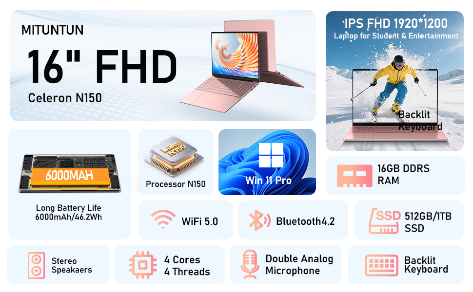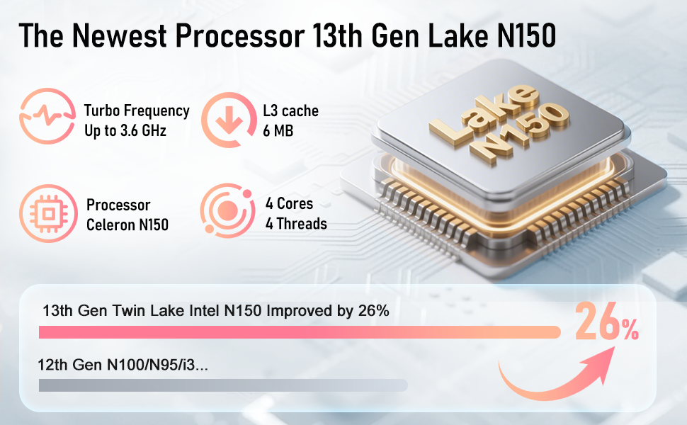 - Smooth Performance for Work & Play: Powered by the latest processor N150 (4C/4T, 3.6GHz) and Integrated Graphics (1GHz), this laptop delivers responsive speed for multitasking, browsing, and everyday tasks without slowing you down.