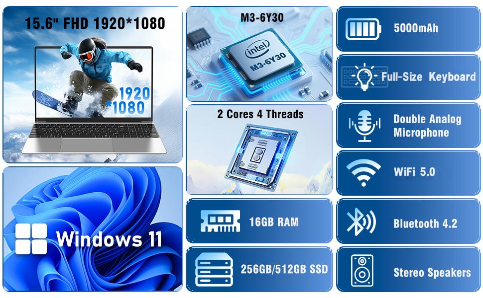 - 【Smooth Performance for Work & Play】 Powered by the processor Intel Core M3 (up to 2.2 GHz) and Integrated Graphics, this laptop delivers responsive speed for multitasking, browsing, and everyday tasks without slowing you down.